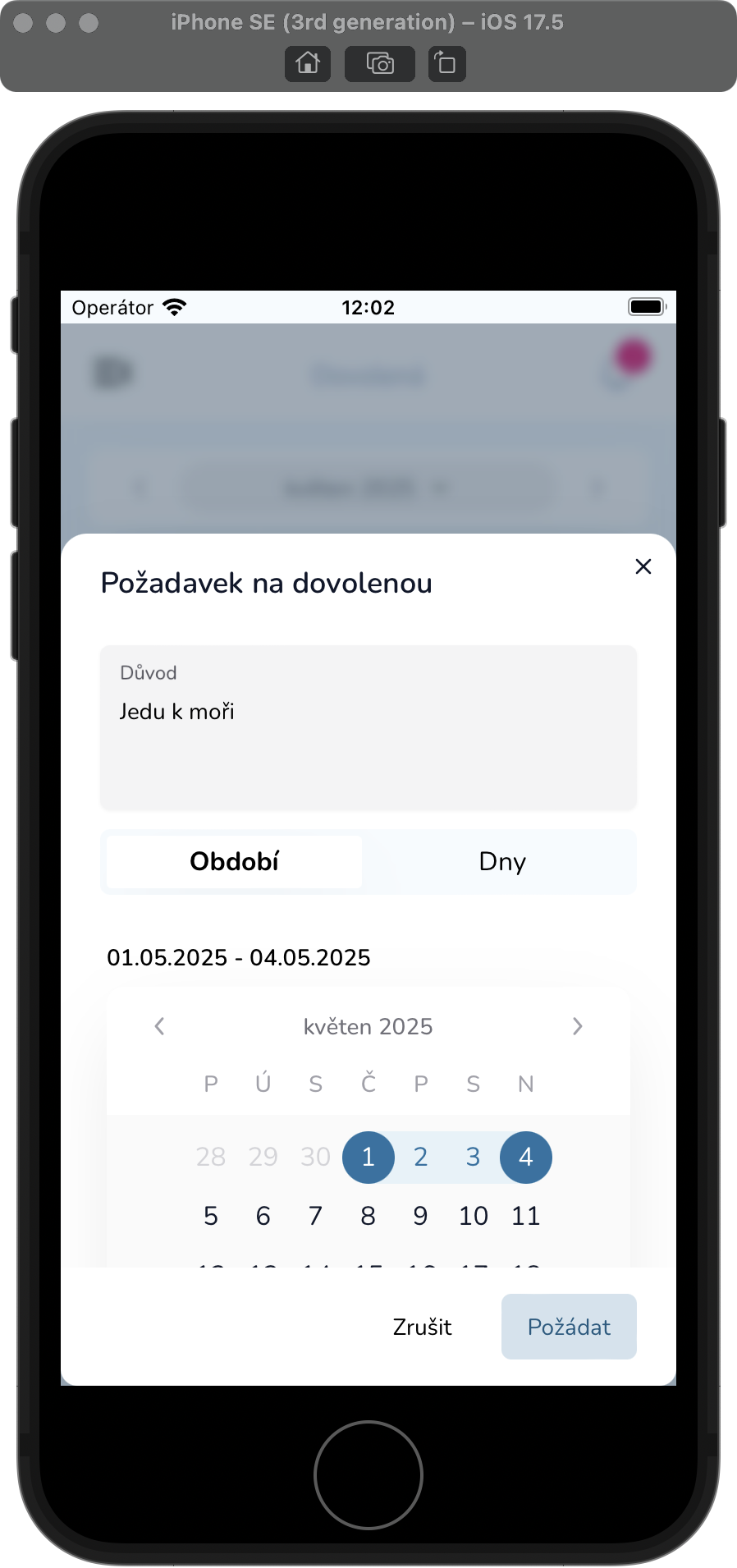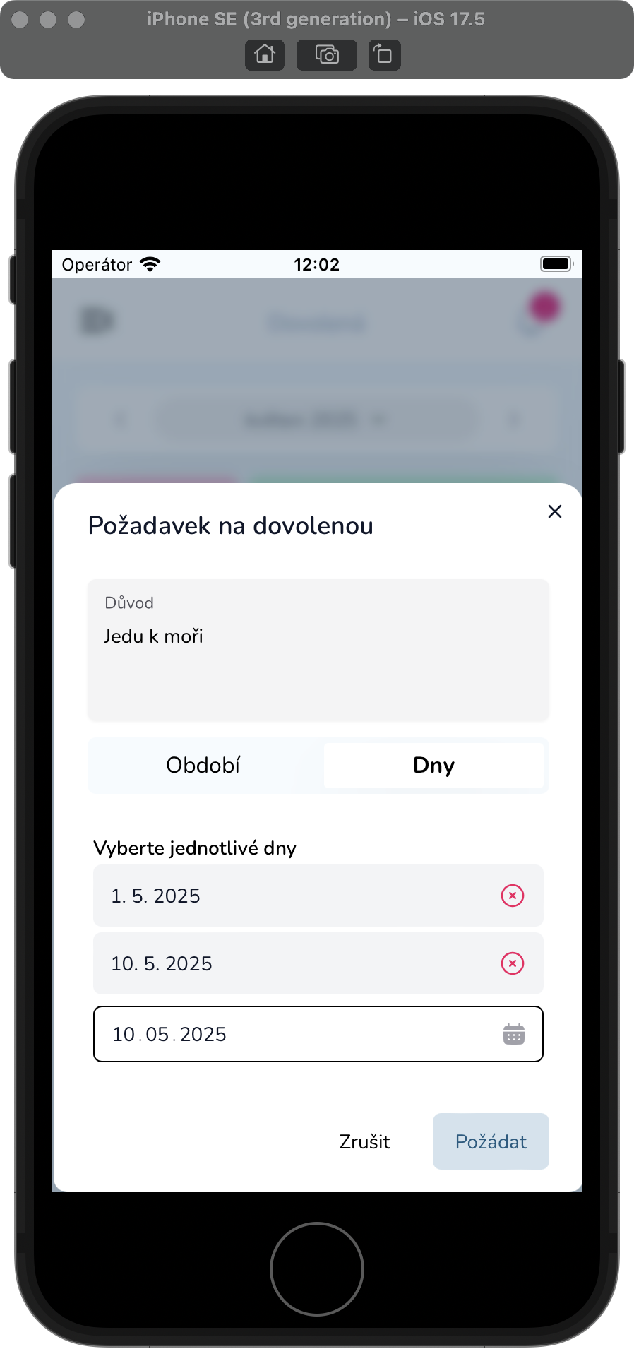 - Zvolte rozsah (např. 10. 6. – 14. 6.) nebo jednotlivé dny.