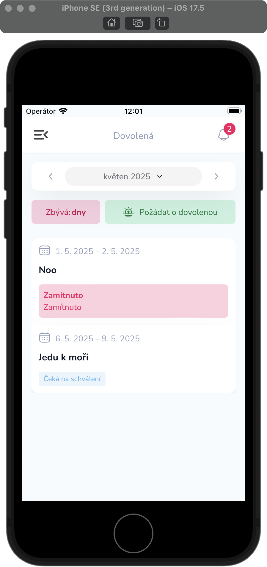 Všechny vaše žádosti o dovolenou najdete v přehledu.